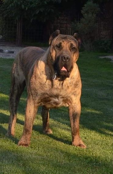 Cromo de Breviercan is the Champion of Serbia located in Bosnia, Europe. He is owned by Goldenwings Kennel and is a Spanish Import from the very famous Breviercan Kennel. Currently, we are proud to have 3 frozen semen breedings from Champion of Serbia Cromo de Breviercan. He is approximately 160 - 170 lbs with an x-ray of hip and elbow at 0 and A (perfect score). He is FCI registered and is in the process of UKC registration.